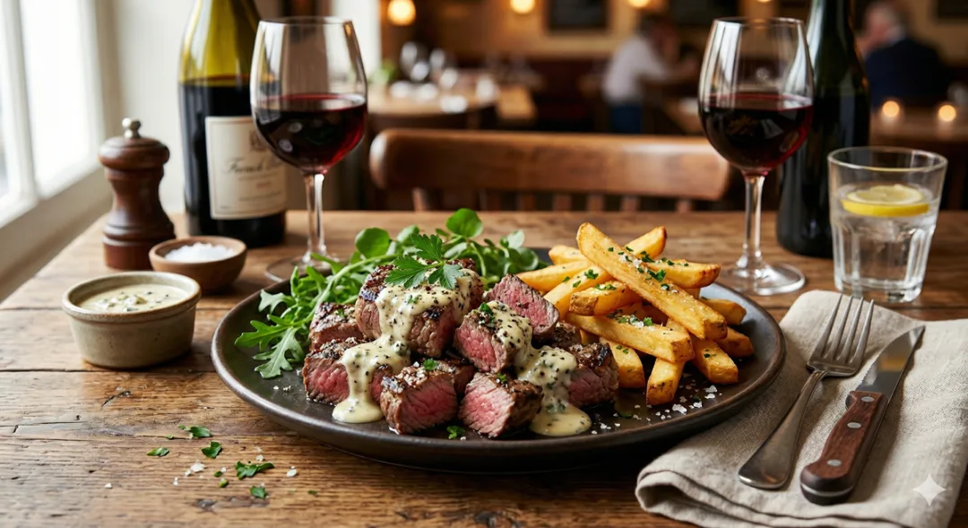 CORTE DE FILE MIGNON AO MOLHO ROQUEFORD COM FRITAS